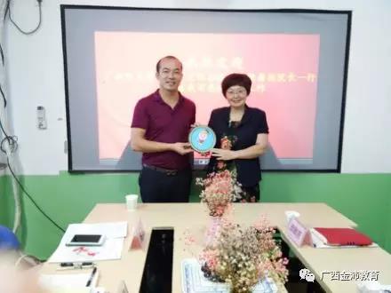 會后,廣西金沛教育執(zhí)行董事粟宥朝向廣西師范學院國際文化與教育學院蔣副院長贈送了吉祥物“金小沛”,蔣副院長也向我司贈送《弟子規(guī)》國際流通版作為紀念。最后,我司國際部團隊與來訪嘉賓合影留念。