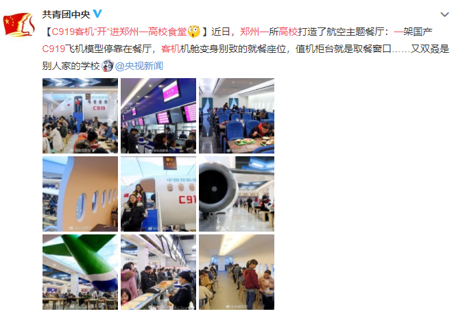 前段時(shí)間,微博@共青團(tuán)中央分享的一則“C919客機(jī)‘開(kāi)’進(jìn)鄭州一高校食堂”的消息引起網(wǎng)友熱議評(píng)論精彩紛呈。