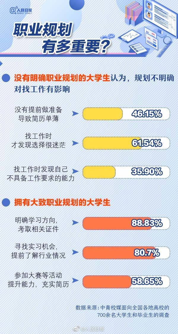 【秋招進行時,你覺得#大學生該不該職業(yè)規(guī)劃#?】近日有調(diào)查顯示,#近九成大學生認為職業(yè)規(guī)劃利于求職#,但僅二成有明確規(guī)劃。一份完備的職業(yè)規(guī)劃,會為你確立清晰的職業(yè)目標,提早積攢工作能力,減少求職時 “兩眼一蒙、無從下手”的風險。你做過職業(yè)規(guī)劃嗎?實用職業(yè)規(guī)劃指南↓↓轉(zhuǎn)給正在求職的TA!