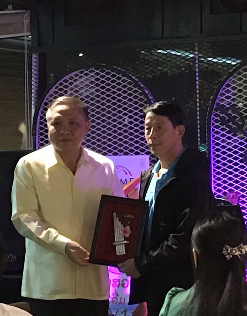 11號(hào)晚上老撾國立大學(xué)校長宋西·諾潘賽為劉傳書老師、王慶陽老師頒發(fā)紀(jì)念品,表示對(duì)兩位老師的感謝,感謝兩位老師對(duì)老撾國立大學(xué)的支持與幫助,并希望兩位老師以后能常來國立大學(xué)交流訪問。