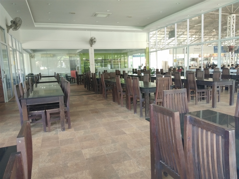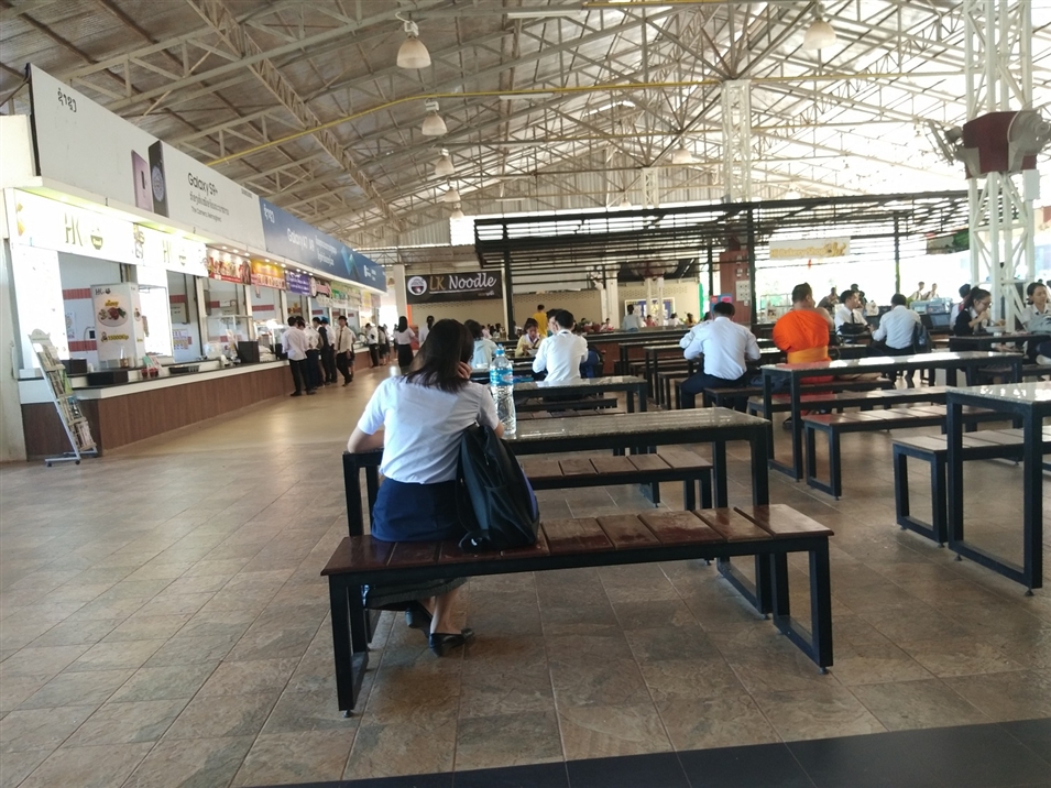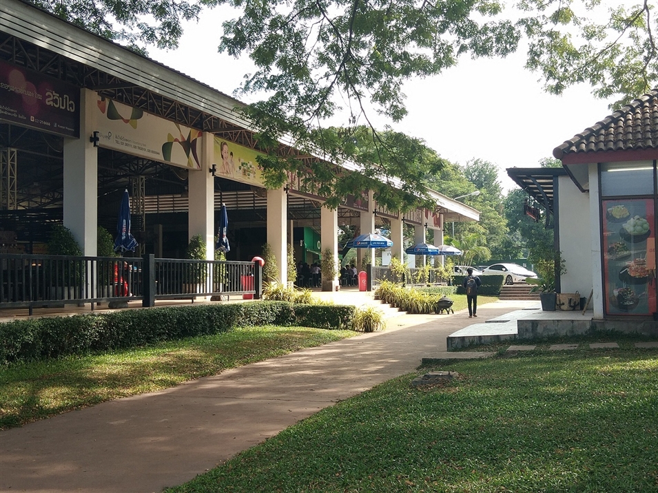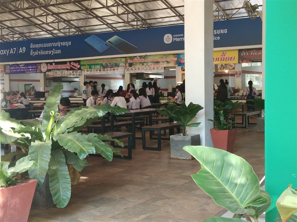 老撾國立大學的食堂帶有很濃郁的東南亞風格,與中國高校的密封式建筑不同,它的四面圍墻基本都以玻璃窗和柱子代替,因此通風和采光都很不錯,食堂里不會充斥著各種食物交雜的悶熱氣息。