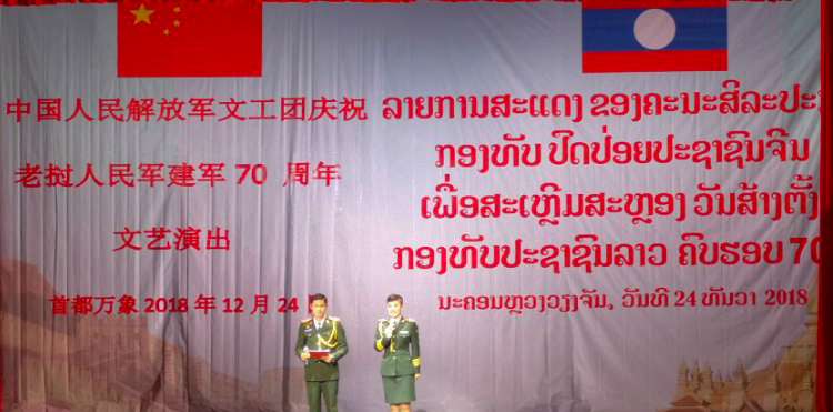 中國人民解放軍文工團慶祝老撾人民軍建軍70周年文藝演出12月24日晚在老撾首都萬象舉行。